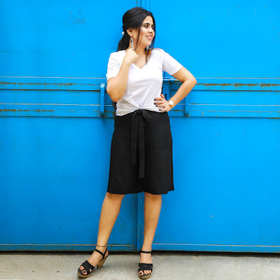 and I saw this smart navy blue knee-length culottes,